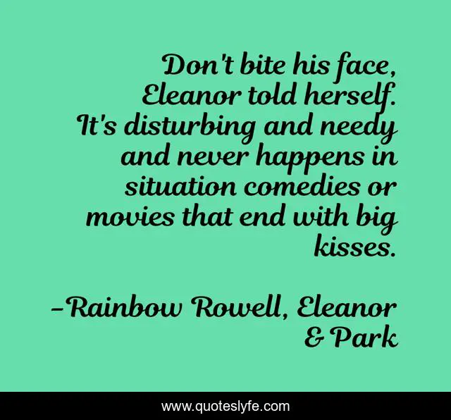 This page presents the quote "Don't bite his face, Eleanor told herself. It's disturbing and needy and never happens in situation comedies or movies that end with big kisses.". Author of this quote is Rainbow Rowell, Eleanor & Park. This quote is about humor, young-adult,.