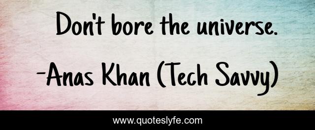 "Anas Khan (Tech Savvy) Quotes." Quoteslyfe.com, 2025. Mon. 08 Dec. 2025. <https://www.quoteslyfe.com/quote/Don-t-bore-the-universe-169703>.