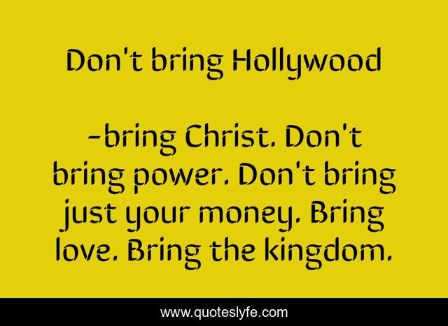 "bring Christ. Don't bring power. Don't bring just your money. Bring love. Bring the kingdom. Quotes." Quoteslyfe.com, 2025. Sat. 06 Dec. 2025. <https://www.quoteslyfe.com/quote/Don-t-bring-Hollywood-206346>.
