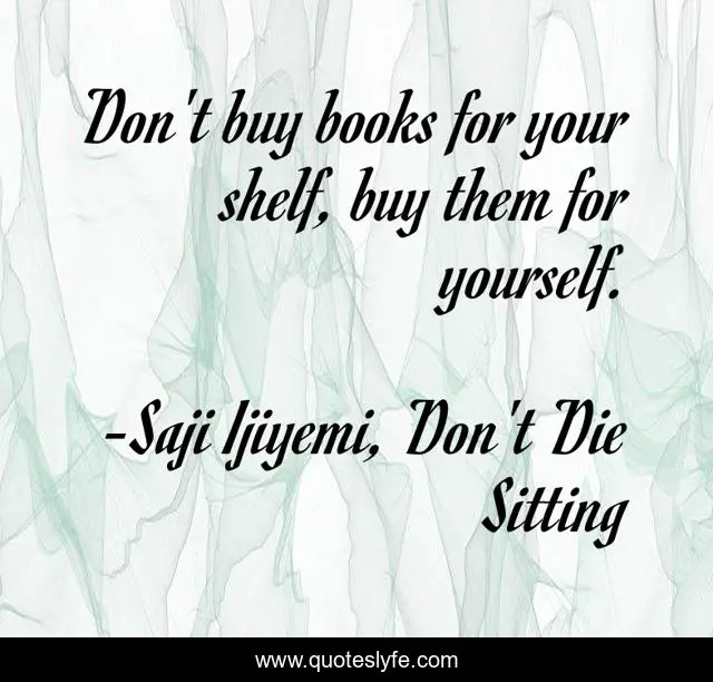 "Saji Ijiyemi, Don't Die Sitting Quotes." Quoteslyfe.com, 2025. Mon. 08 Dec. 2025. <https://www.quoteslyfe.com/quote/Don-t-buy-books-for-your-shelf-178693>.