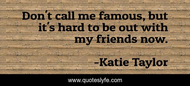 This page presents the quote "Don't call me famous, but it's hard to be out with my friends now.". Author of this quote is Katie Taylor. This quote is about me, now, friends,.