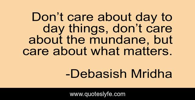 This page presents the quote "Don’t care about day to day things, don’t care about the mundane, but care about what matters.". Author of this quote is Debasish Mridha. This quote is about care, life, love, knowledge, inspirational, intelligence, philosophy, wisdom, affection,.