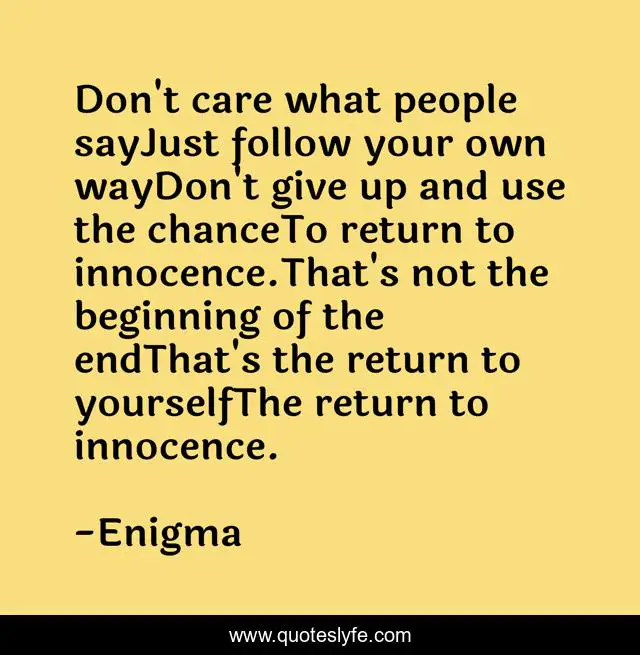 "Enigma Quotes." Quoteslyfe.com, 2025. Sat. 06 Dec. 2025. <https://www.quoteslyfe.com/quote/Don-t-care-what-people-sayJust-follow-78690>.