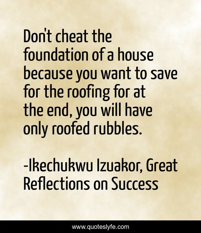 "Ikechukwu Izuakor, Great Reflections on Success Quotes." Quoteslyfe.com, 2025. Fri. 05 Dec. 2025. <https://www.quoteslyfe.com/quote/Don-t-cheat-the-foundation-of-a-47779>.