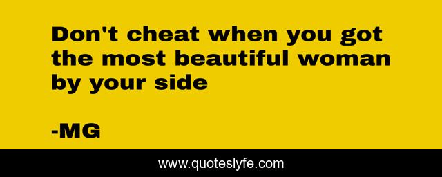 This page presents the quote "Don't cheat when you got the most beautiful woman by your side". Author of this quote is MG. This quote is about husband-and-wife, good, love, faithful, cheating, inspirational, enthusiasm, affection,.