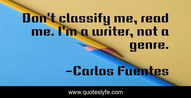 This page presents the quote "Don't classify me, read me. I'm a writer, not a genre.". Author of this quote is Carlos Fuentes. This quote is about genre, fuentes, carlos, writing,.