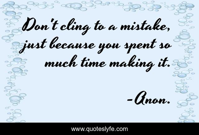 This page presents the quote "Don't cling to a mistake, just because you spent so much time making it.". Author of this quote is Anon.. .