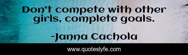 This page presents the quote "Don't compete with other girls, complete goals.". Author of this quote is Janna Cachola. This quote is about feminist, inspired-soul, goals, goal-digger,.