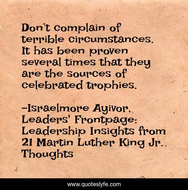 "Israelmore Ayivor, Leaders' Frontpage: Leadership Insights from 21 Martin Luther King Jr. Thoughts Quotes." Quoteslyfe.com, 2025. Mon. 08 Dec. 2025. <https://www.quoteslyfe.com/quote/Don-t-complain-of-terrible-circumstances-It-64184>.