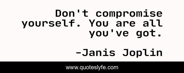This page presents the quote "Don't compromise yourself. You are all you've got.". Author of this quote is Janis Joplin. This quote is about character, personality,.