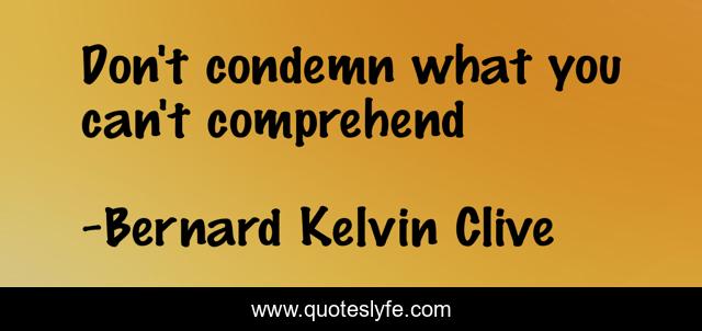 This page presents the quote "Don't condemn what you can't comprehend". Author of this quote is Bernard Kelvin Clive. This quote is about discernment, understanding, patience, inspirational, enthusiasm, wisdom,.