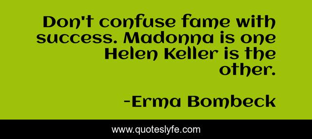 This page presents the quote "Don't confuse fame with success. Madonna is one Helen Keller is the other.". Author of this quote is Erma Bombeck. This quote is about madonna, fame,.