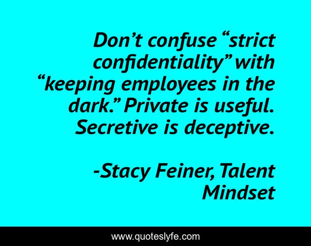 "Stacy Feiner, Talent Mindset Quotes." Quoteslyfe.com, 2025. Fri. 05 Dec. 2025. <https://www.quoteslyfe.com/quote/Don-t-confuse-strict-confidentiality-with-keeping-128606>.