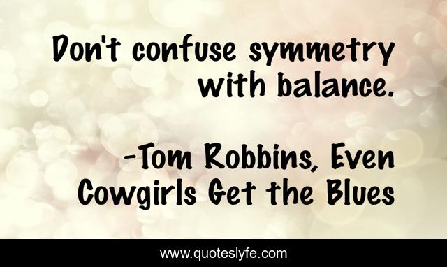 "Tom Robbins, Even Cowgirls Get the Blues Quotes." Quoteslyfe.com, 2025. Sat. 06 Dec. 2025. <https://www.quoteslyfe.com/quote/Don-t-confuse-symmetry-with-balance-252177>.
