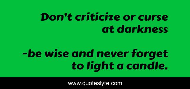 "be wise and never forget to light a candle. Quotes." Quoteslyfe.com, 2025. Sat. 06 Dec. 2025. <https://www.quoteslyfe.com/quote/Don-t-criticize-or-curse-at-darkness-74426>.