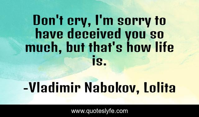 This page presents the quote "Don't cry, I'm sorry to have deceived you so much, but that's how life is.". Author of this quote is Vladimir Nabokov, Lolita. This quote is about lies, life, relationship,.