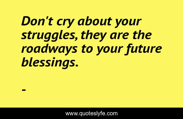 This page presents the quote "Don't cry about your struggles, they are the roadways to your future blessings.". Author of this quote is . This quote is about your-future, edmond-mbiaka, your-struggles, don-t-cry, blessings, roadways, struggle,.