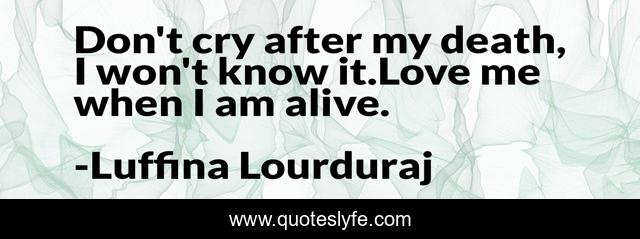 "Luffina Lourduraj Quotes." Quoteslyfe.com, 2025. Mon. 08 Dec. 2025. <https://www.quoteslyfe.com/quote/Don-t-cry-after-my-death-I-49810>.