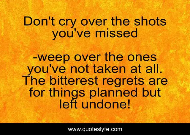 "weep over the ones you've not taken at all. The bitterest regrets are for things planned but left undone! Quotes." Quoteslyfe.com, 2025. Sat. 06 Dec. 2025. <https://www.quoteslyfe.com/quote/Don-t-cry-over-the-shots-you-129286>.