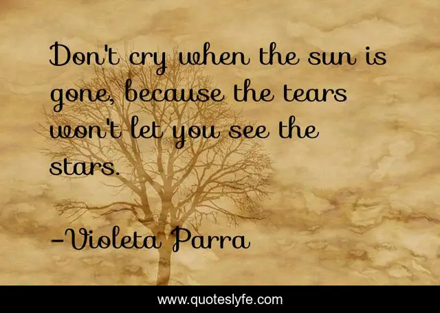 This page presents the quote "Don't cry when the sun is gone, because the tears won't let you see the stars.". Author of this quote is Violeta Parra. .