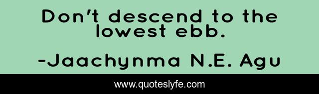 "Jaachynma N.E. Agu Quotes." Quoteslyfe.com, 2025. Sun. 07 Dec. 2025. <https://www.quoteslyfe.com/quote/Don-t-descend-to-the-lowest-ebb-120857>.