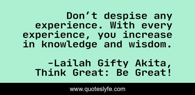 "Lailah Gifty Akita, Think Great: Be Great! Quotes." Quoteslyfe.com, 2025. Sat. 06 Dec. 2025. <https://www.quoteslyfe.com/quote/Don-t-despise-any-experience-With-every-31891>.