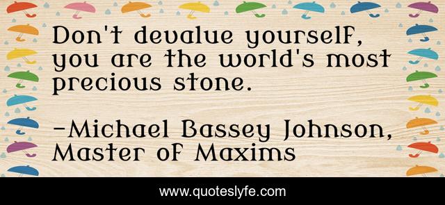 "Michael Bassey Johnson, Master of Maxims Quotes." Quoteslyfe.com, 2025. Sat. 06 Dec. 2025. <https://www.quoteslyfe.com/quote/Don-t-devalue-yourself-you-are-the-106194>.