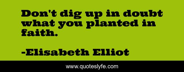 This page presents the quote "Don't dig up in doubt what you planted in faith.". Author of this quote is Elisabeth Elliot. This quote is about faith, doubt, fear-uncertainty,.