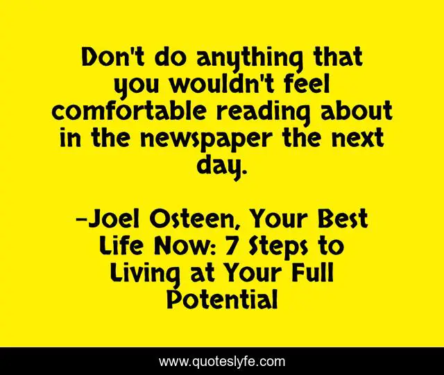 This page presents the quote "Don't do anything that you wouldn't feel comfortable reading about in the newspaper the next day.". Author of this quote is Joel Osteen, Your Best Life Now: 7 Steps to Living at Your Full Potential. This quote is about feel, caution, wise,.