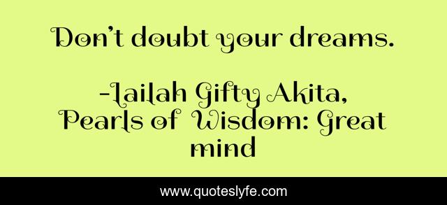 "Lailah Gifty Akita, Pearls of Wisdom: Great mind Quotes." Quoteslyfe.com, 2025. Mon. 08 Dec. 2025. <https://www.quoteslyfe.com/quote/Don-t-doubt-your-dreams-169092>.