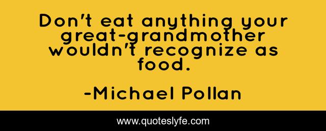 This page presents the quote "Don't eat anything your great-grandmother wouldn't recognize as food.". Author of this quote is Michael Pollan. .