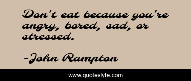 This page presents the quote "Don't eat because you're angry, bored, sad, or stressed.". Author of this quote is John Rampton. This quote is about angry, stressed,.