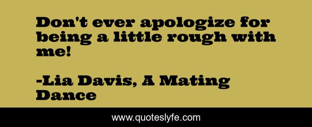 This page presents the quote "Don't ever apologize for being a little rough with me!". Author of this quote is Lia Davis, A Mating Dance. This quote is about a-mating-dance, lia-davis, paranormal-romance, shapeshifter, ashwood-falls,.