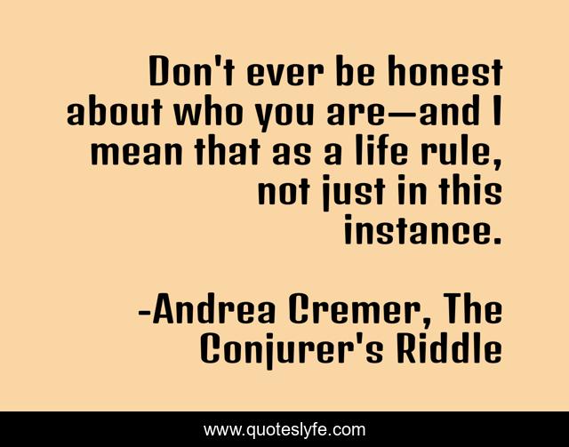 "Andrea Cremer, The Conjurer's Riddle Quotes." Quoteslyfe.com, 2025. Tue. 09 Dec. 2025. <https://www.quoteslyfe.com/quote/Don-t-ever-be-honest-about-who-166101>.