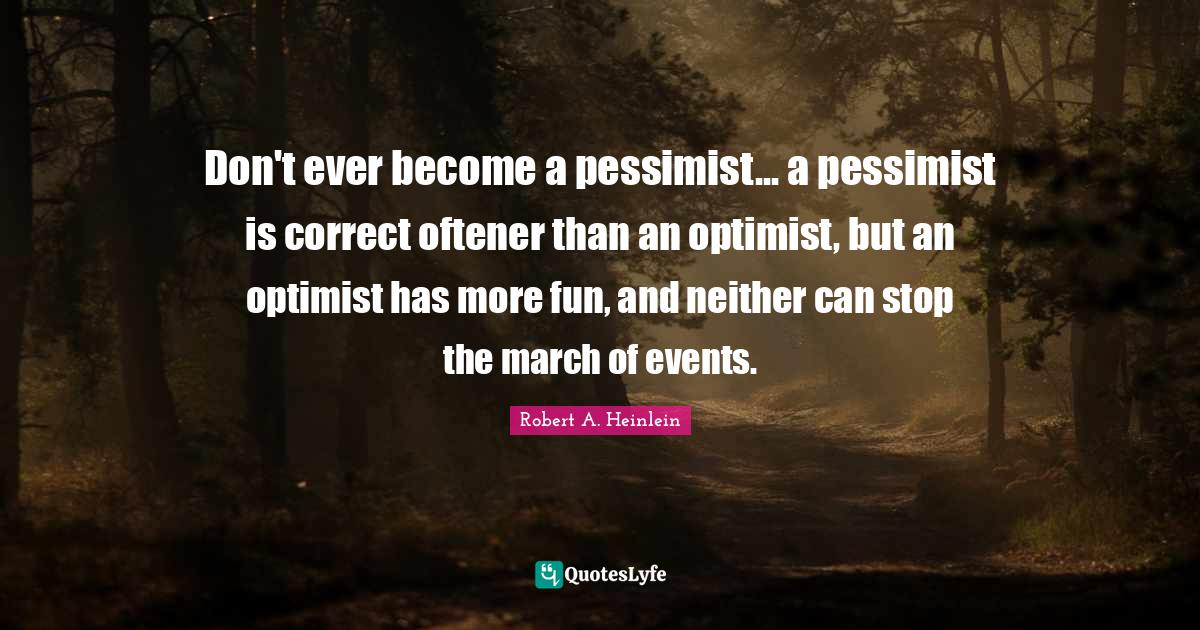 "Robert A. Heinlein Quotes." Quoteslyfe.com, 2026. Tue. 13 Jan. 2026. <https://www.quoteslyfe.com/quote/Don-t-ever-become-a-pessimist-a-1004634>.