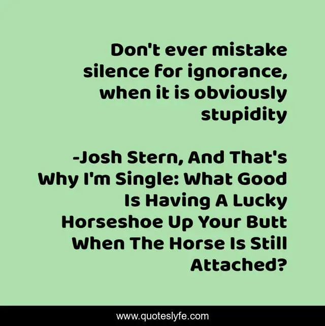 "Josh Stern, And That's Why I'm Single: What Good Is Having A Lucky Horseshoe Up Your Butt When The Horse Is Still Attached? Quotes." Quoteslyfe.com, 2025. Mon. 08 Dec. 2025. <https://www.quoteslyfe.com/quote/Don-t-ever-mistake-silence-for-ignorance-166699>.