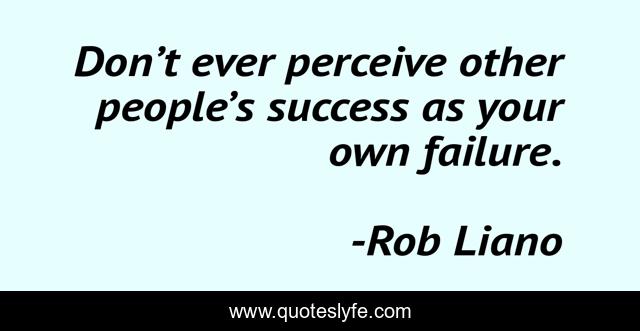 This page presents the quote "Don’t ever perceive other people’s success as your own failure.". Author of this quote is Rob Liano. This quote is about motivation, perception, rob-liano, rock-star, success, failure, attitude, behaviour, quotes,.