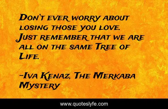 This page presents the quote "Don’t ever worry about losing those you love. Just remember that we are all on the same Tree of Life.". Author of this quote is Iva Kenaz, The Merkaba Mystery. This quote is about tree-of-life, spiritual, esoteric, spirituality, inspirational, new-thought, enthusiasm, new-age,.