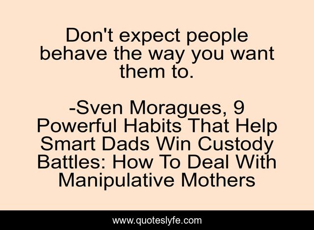 "Sven Moragues, 9 Powerful Habits That Help Smart Dads Win Custody Battles: How To Deal With Manipulative Mothers Quotes." Quoteslyfe.com, 2025. Sat. 06 Dec. 2025. <https://www.quoteslyfe.com/quote/Don-t-expect-people-behave-the-way-36957>.