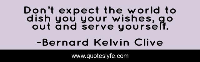 This page presents the quote "Don’t expect the world to dish you your wishes, go out and serve yourself.". Author of this quote is Bernard Kelvin Clive. This quote is about enthusiasm, actions-over-words, dreams-inspirational, dreams, inspirational,.