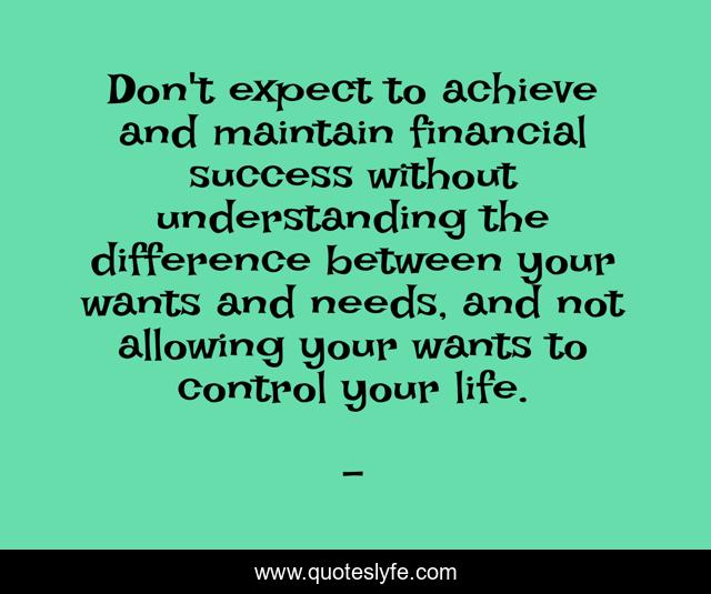 This page presents the quote "Don't expect to achieve and maintain financial success without understanding the difference between your wants and needs, and not allowing your wants to control your life.". Author of this quote is . This quote is about edmond-mbiaka, maintaining-financial-success, achieving-financial-success, your-wants, your-pockets,.