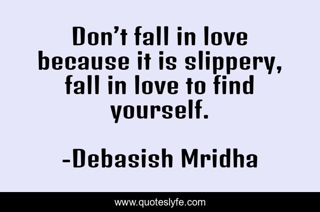 This page presents the quote "Don’t fall in love because it is slippery, fall in love to find yourself.". Author of this quote is Debasish Mridha. This quote is about falling-in-love, love, philosophy, debasish-mridha, quotes, inspirational, find-yourself, enthusiasm, debasish-mridha-m-d,.