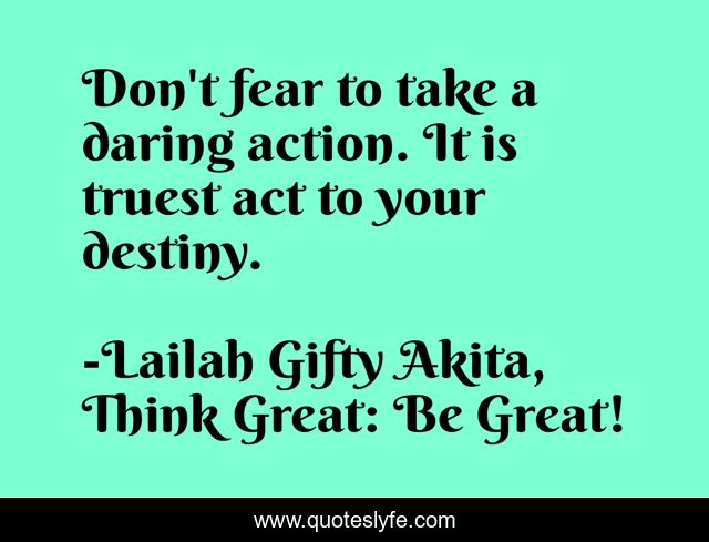 "Lailah Gifty Akita, Think Great: Be Great! Quotes." Quoteslyfe.com, 2025. Sat. 06 Dec. 2025. <https://www.quoteslyfe.com/quote/Don-t-fear-to-take-a-daring-91685>.