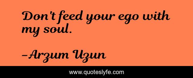 This page presents the quote "Don't feed your ego with my soul.". Author of this quote is Arzum Uzun. This quote is about relationships, arzum-uzun-sözleri, relationship, egocentrism, egoism, arzum-uzun, ego, conflict, love,.