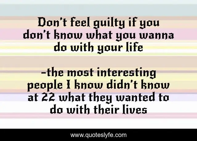 This page presents the quote "Don’t feel guilty if you don’t know what you wanna do with your life". Author of this quote is the most interesting people I know didn’t know at 22 what they wanted to do with their lives. .