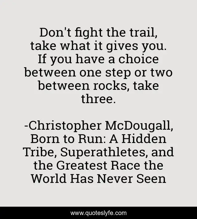 "Christopher McDougall, Born to Run: A Hidden Tribe, Superathletes, and the Greatest Race the World Has Never Seen Quotes." Quoteslyfe.com, 2025. Tue. 09 Dec. 2025. <https://www.quoteslyfe.com/quote/Don-t-fight-the-trail-take-what-254719>.