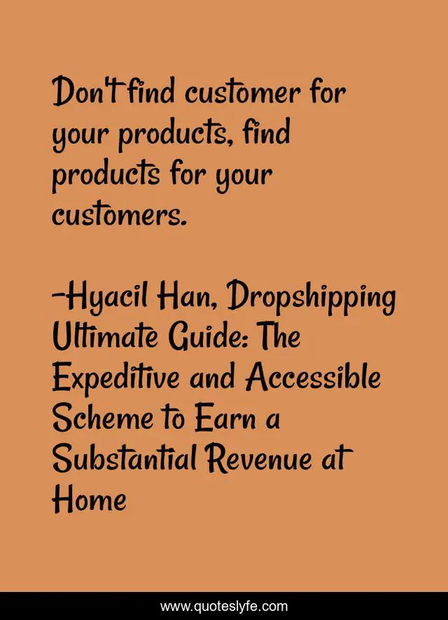 "Hyacil Han, Dropshipping Ultimate Guide: The Expeditive and Accessible Scheme to Earn a Substantial Revenue at Home Quotes." Quoteslyfe.com, 2025. Sat. 06 Dec. 2025. <https://www.quoteslyfe.com/quote/Don-t-find-customer-for-your-products-80209>.
