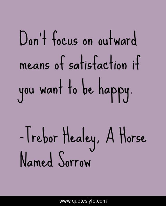 This page presents the quote "Don’t focus on outward means of satisfaction if you want to be happy.". Author of this quote is Trebor Healey, A Horse Named Sorrow. This quote is about satisfaction, happy,.