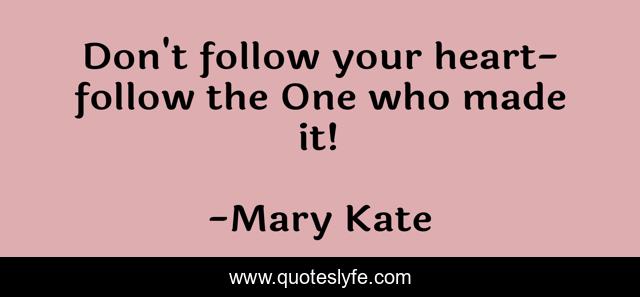 This page presents the quote "Don't follow your heart-follow the One who made it!". Author of this quote is Mary Kate. This quote is about enthusiasm, spiritual, christian, encouraging, inspirational,.