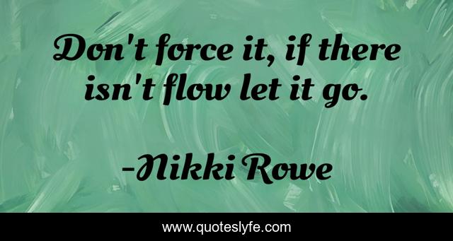 This page presents the quote "Don't force it, if there isn't flow let it go.". Author of this quote is Nikki Rowe. This quote is about life, wise, author, quote, flow, spiritual, life-and-sayings, passion, lightworkers,.